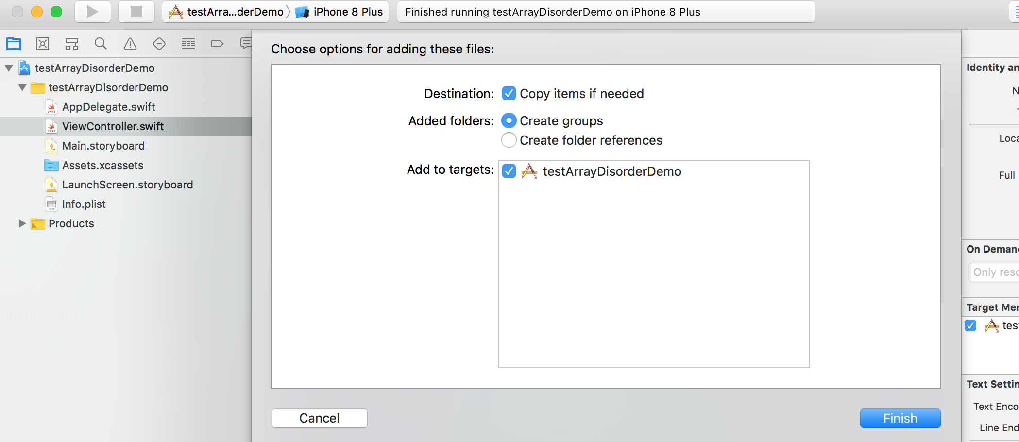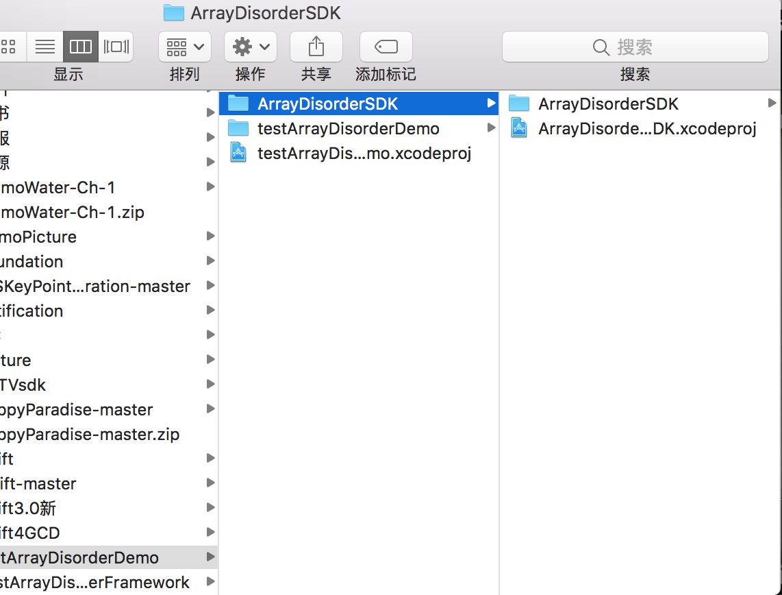 然后把ArrayDisorderSDK 拖入到testArrayDisorderDemo 文件中 如图