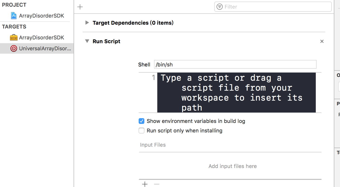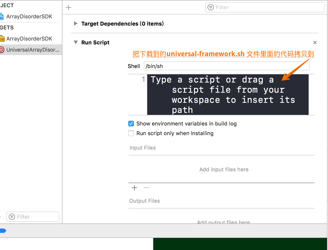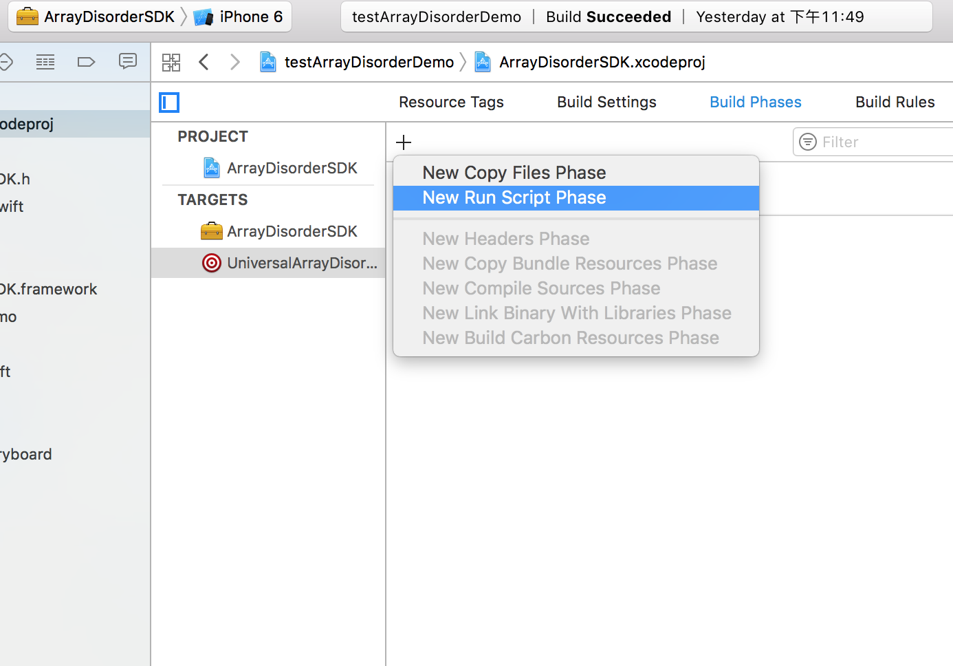 2.选中 UniversalArrayDisorder –> Build Phases –> 选中加号 –> 选中 New Run Script Phase