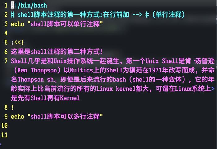 # shell脚本注释的第一种方式:在行前加 --> # (单行注释)
